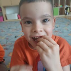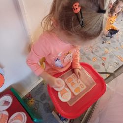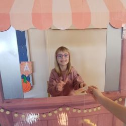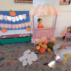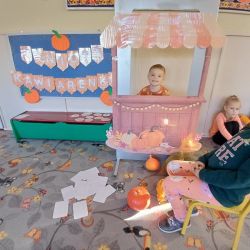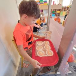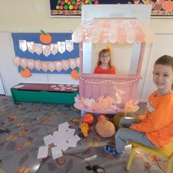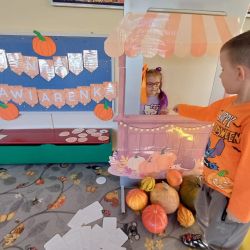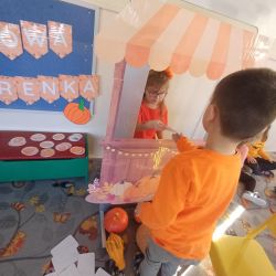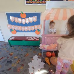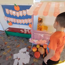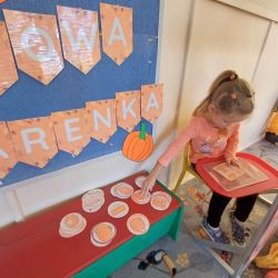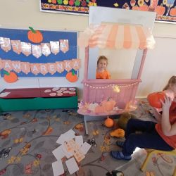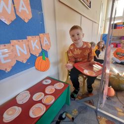 W naszej dyniowej kawiarence dzieci wcieliły się w rolę kelnerów i z dumą serwowały smakołyki swoim kolegom i koleżankom - oczywiście dyniowe.