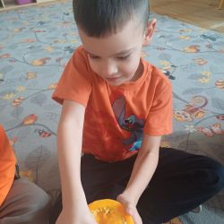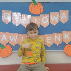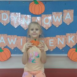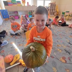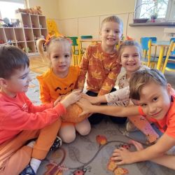 Dzisiejszy dzień (30 października) był pełen radości, ruchu i pomarańczowych akcentów! Z okazji Dnia Dyni przedszkolaki z grupy MOTYLKI wzięły udział w wielu „dyniowych” atrakcjach: