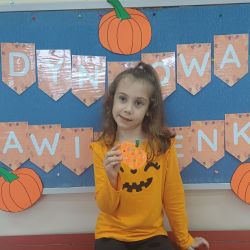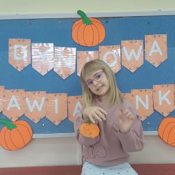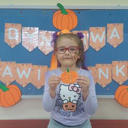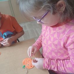 Na zakończenie dzieci ozdabiały dyniowe zawieszki, które zabrały do domu jako pamiątkę tego wesołego dnia.