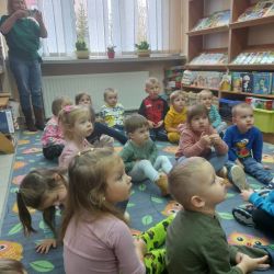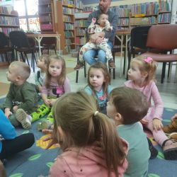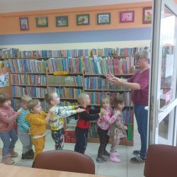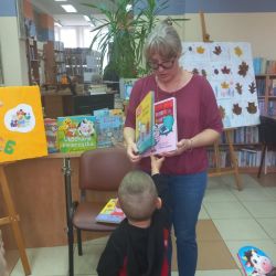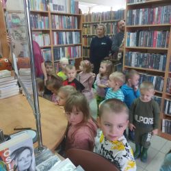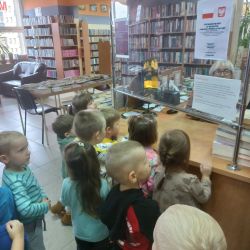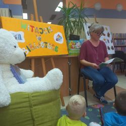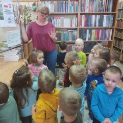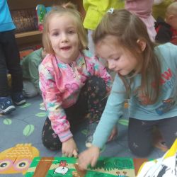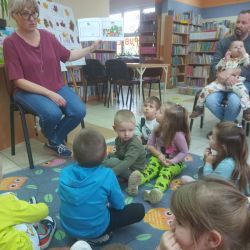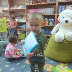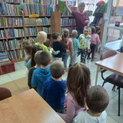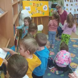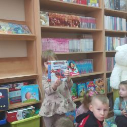 We wtorek 27 października Żabki udały się ze swoją pierwszą wizytą do Miejskiej Biblioteki Publicznej do filii nr 8, która znajduje się nieopodal naszego przedszkola. Tutaj dowiedziały się, że nawet takie maluchy jak one mogą zostać czytelnikami i mieć swoją kartę biblioteczną, zbierać specjalne naklejki, by w efekcie zdobyć nagrodę niespodziankę. Jako że była to nasza pierwsza wizyta w bibliotece, dzieci poznały wszystkie zakamarki, dowiedziały się, na której półce szukać książeczek dla najmłodszych i na czym polega wypożyczanie książek. Wszystko było tu nowe i ciekawe, ale najciekawsze okazały się same książeczki. Przedszkolaki z zapałem oglądały kolorowe obrazki, rozpoznawały bohaterów swoich ulubionych bajek i na koniec wybrały kilka pozycji, które wypożyczyła pani Ania. Po powrocie do przedszkola dzieci z ochotą usiadły na dywanie, by posłuchać przygód swojej ulubionej bohaterki Kici Koci. Na pewno jeszcze nie raz zawitamy w gościnne progi biblioteki, by czerpać przyjemność z obcowania z książkami. Bo czym skorupka za młodu...