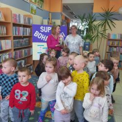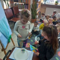 4 marca Żabki uczestniczyły w przemiłym spotkaniu z paniami z biblioteki. Tematem wiodącym było nadchodzące święto kobiet. Przedszkolaki chętnie opowiadały o super bohaterkach, słuchały zagadek i odgadywały zawody, jakie kobiety wykonują, a na koniec stworzyły pracę plastyczną - wspaniały bukiet kwiatów dla wszystkich kobiet, tych zupełnie małych i tych już dorosłych.