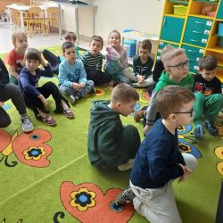Po lekturze odbyła się rozmowa kierowana, podczas której dzieci dzieliły się swoimi spostrzeżeniami i odpowiadały na pytania dotyczące górnictwa. Rozmawialiśmy między innymi o tym, jak wydobywany jest węgiel oraz dlaczego jest on ważny w codziennym życiu.
