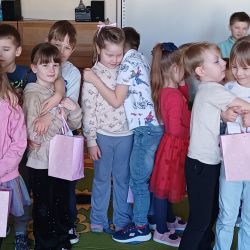 Na zakończenie zajęć chłopcy złożyli dziewczynkom serdeczne życzenia oraz wręczyli im drobne upominki z okazji Dnia Kobiet. Spotkanie przebiegło w radosnej i życzliwej atmosferze.
