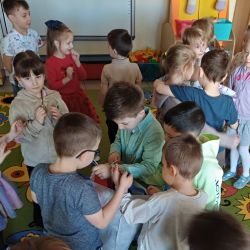 Dzieci uczestniczyły również w zabawach ruchowych i muzycznych przy piosenkach związanych z tematyką Dnia Kobiet. Wspólne śpiewanie i zabawa sprawiły dzieciom wiele radości i pozwoliły w miłej atmosferze celebrować to wyjątkowe święto.