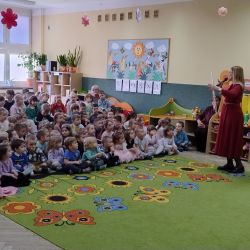 W poniedziałek - 16 marca - gościliśmy w przedszkolu muzyków Filharmonii Świętokrzyskiej z kolejnym już koncertem kameralnym. Tym razem, w obliczu nadchodzącej nowej pory roku, zabrzmiały utwory zapowiadające budzącą się przyrodę oraz piosenki o wiośnie, pełne śpiewu ptaków, słońca i kolorowych kwiatów.