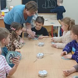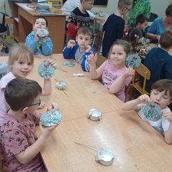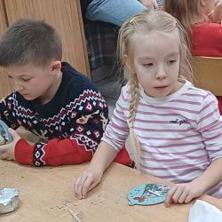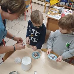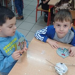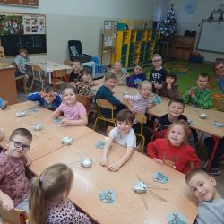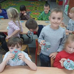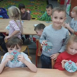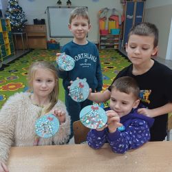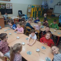 9 grudnia grupa Krasnoludki uczestniczyła w warsztatach bożonarodzeniowych. Zerówkowicze mieli do wykonania świąteczną bombkę. Dzieci bardzo intensywnie i z dużą dokładnością pracowały nad swoim zadaniem, wkładając w nie wiele zaangażowania i kreatywności. Własnoręcznie wykonane bombki zabrali ze sobą do domu, aby zawiesić je na domowej choince.