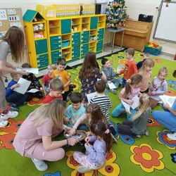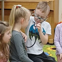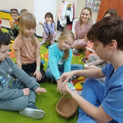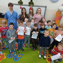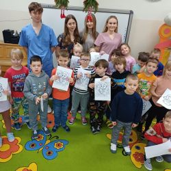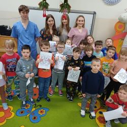 Dziś dzieci z grupy Krasnoludki uczestniczyły w ciekawym i wartościowym spotkaniu ze studentami pielęgniarstwa z Uniwersytetu Jana Kochanowskiego w Kielcach. Goście w przystępny i atrakcyjny sposób rozmawiali z dziećmi o zdrowiu, higienie osobistej, bezpieczeństwie, prawidłowym odżywianiu oraz aktywności fizycznej. Spotkanie było pełne rozmów i praktycznych wskazówek, które pomogą najmłodszym dbać o zdrowie na co dzień.
