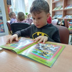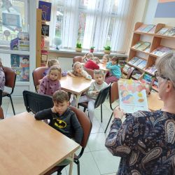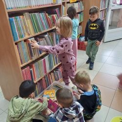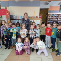 Na zakończenie wizyty dzieci mogły swobodnie obejrzeć książki, jakie ciekawe historie kryją się w kolorowych okładkach. Spotkanie było pełne uśmiechu, wyobraźni i radości z odkrywania świata książek.