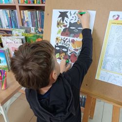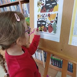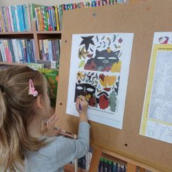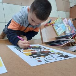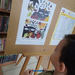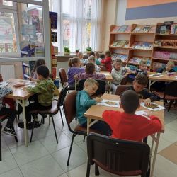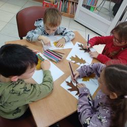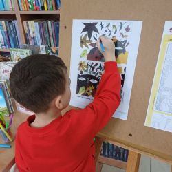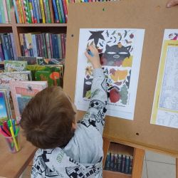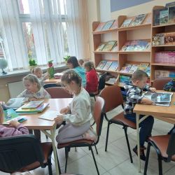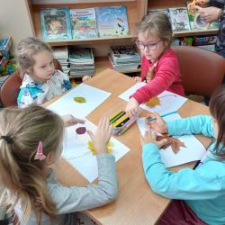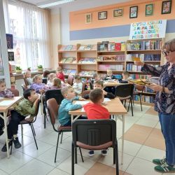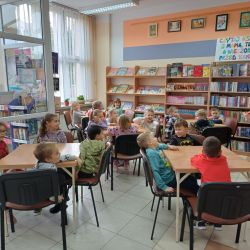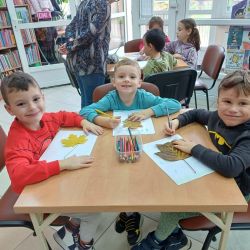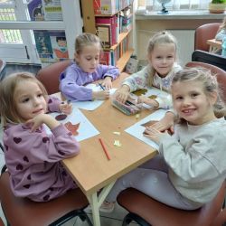Dnia 22 października 2025 r. dzieci z grupy MOTYLKI odwiedziły Miejską Bibliotekę Publiczną filia nr 8 w Kielcach, gdzie czekały na nich niezwykle interesujące zajęcia, które rozpoczęły się wysłuchaniem opowiadania Małgorzaty Strzałkowskiej "Stworek Kolorek i antocyjany". Dzieci z zainteresowaniem śledziły losy bohaterów i chętnie dzieliły się swoimi spostrzeżeniami.