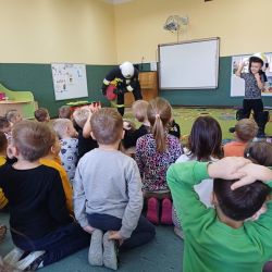 Na powitanie dzieci przygotowały piosenkę o numerze alarmowym 112, która bardzo spodobała się naszemu gościowi.