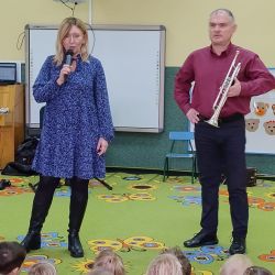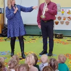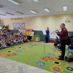 Poniedziałkowe przedpołudnie 24 listopada upłynęło przedszkolakom pod znakiem patriotycznych piosenek, pieśni i utworów instrumentalnych. Zadbali o to muzycy z Filharmonii Świętokrzyskiej, którzy przedstawili dzieciom za pomocą utworów muzycznych drogę Polaków do niepodległości. Przedszkolaki włączyły się w ten patriotyczny koncert śpiewając, klaszcząc i przytupując w rytm polskich tańców narodowych. To była dobra lekcja historii i patriotyzmu, który rozbudzamy już od przedszkola.