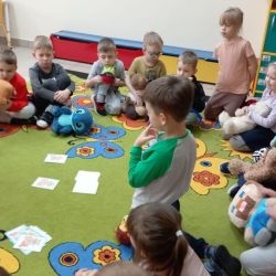 25 listopada 2025 roku przedszkolaki z grupy Krasnoludki obchodziły Dzień Pluszowego Misia. Dzieci rozpoczęły świętowanie od rozwiązania zagadki o pluszowym misiu, a następnie zapoznały się z historią powstania tej popularnej zabawki. Przedszkolaki uczestniczyły w wesołych zabawach ruchowych ze swoimi ulubionymi maskotkami oraz wysłuchały bajki edukacyjnej pt. „Mały miś i jego wielka opowieść”. Po wysłuchaniu bajki odbyła się rozmowa na temat jej morału. Na zakończenie dzieci brały udział w różnorodnych zabawach z misiami, które dostarczyły im wiele radości i uśmiechu.