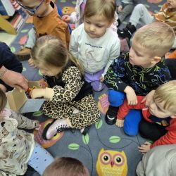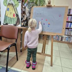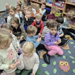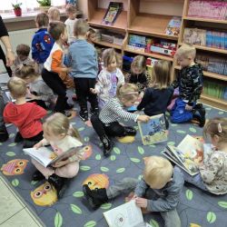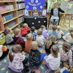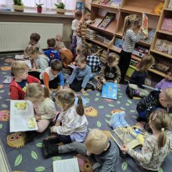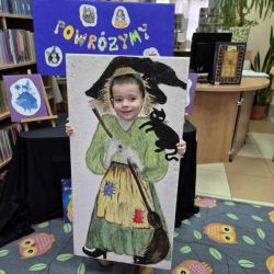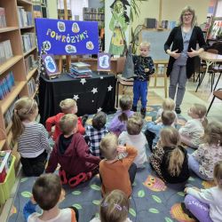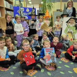 Dzieci z grupy "Misie" były z wizytą w bibliotece. Miały tam możliwość przenieść się w magiczny świat wróżb i zabaw związanych z andrzejkową tradycją. Na początku wysłuchały wiersza "Mała wiedźma". Brały również udział w zabawach andrzejkowych: Losy szczęścia, Magiczna kula. Pod koniec wizyty przedszkolaki oglądały książeczki. To był dzień pełen wrażeń.