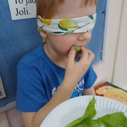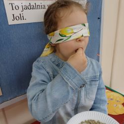 30 marca dzieci z grupy MOTYLKI wykonały kolejne zadanie w ramach Ogólnopolskiego Projektu Edukacyjnego "Gramy Zmysłami" - tym razem dzieci rozwijały zmysł smaku. Przedszkolaki zamieniły się w "Detektywów Smaku" i próbowały różnych produktów spożywczych, określając ich konsystencję i smak. Było to ciekawe i smakowite doświadczenie dla MOTYLKÓW.