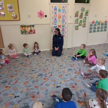 SPOTKANIE ZE STRAŻAKIEM - grupy: "Misie", "Pszczółki" i "Motylki"