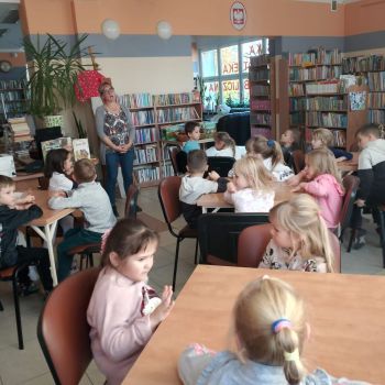 21 października dzieci z grupy "Tygryski" odwiedziły Miejską Bibliotekę Publiczną w Kielcach - filia nr 8, gdzie uczestniczyły w zajęciach na temat "G ...