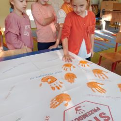 Podsumowaniem Tygodnia Budowania Relacji był piątkowy pomarańczowy marsz przedszkolaków alejkami osiedla Barwinek, podczas którego najmłodsi z radością i zaangażowaniem nieśli przesłanie zgody i przyjaźni.