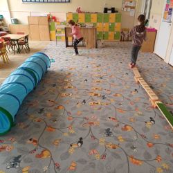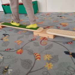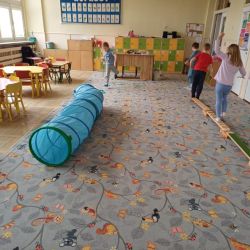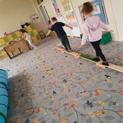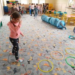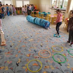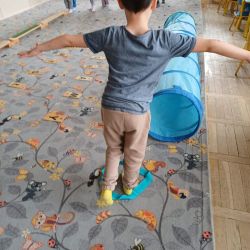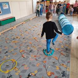 Dnia 8 kwietnia dzieci z grupy MOTYLKI w ramach Ogólnopolskiego Projektu Edukacyjnego "Gramy Zmysłami" rozwijały zmysł równowagi i uczestniczyły w „Wesołym miasteczku równowagi”, pokonując różnorodne stacje ruchowe rozwijające koordynację, stabilizację i świadomość ciała. Poprzez zabawę, śmiech i aktywność fizyczną wzmacniały zmysł równowagi oraz pewność siebie w wykonywaniu nowych wyzwań.
