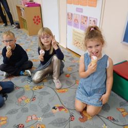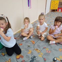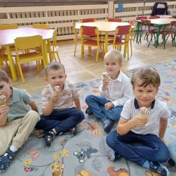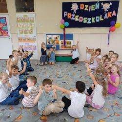19 września 2025 r. dzieci z grupy MOTYLKI obchodziły Ogólnopolski Dzień Przedszkolaka. Był to dzień pełen radości, zabawy i uśmiechu. Były tańce z balonami, które wywołały mnóstwo śmiechu i energii. Nie zabrakło również słodkich lodów, które dodały ochłody po wesołych harcach. Dzieci otrzymały pamiątkowe medale, a zwieńczeniem dnia było ozdobienie sylwetki dziecka z własnym imieniem. Super być przedszkolakiem!