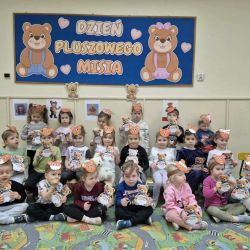 Dzieci z grupy Misie uroczyście obchodziły Światowy Dzień Pluszowego Misia. Dzieci w tym dniu przyszły do przedszkola ze swoimi pluszowymi ulubieńcami- misiami . Po przedstawieniu swojego pluszowego przyjaciela, poznały historię powstania pluszowego misia oraz wysłuchały ciekawostek z życia misiów- bohaterów literackich i filmowych. Dzieci brały udział w konkursach i zabawach dydaktycznych. Były zabawy z misiami przy piosenkach o misiach. Wspólnie wykonały pracę plastyczną "Mój miś". W tym dniu wszystkie dzieci świetnie się bawiły. Na zakończenie dzieci przyznały, że miś jest najlepszym przyjacielem dzieci.