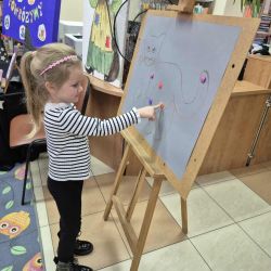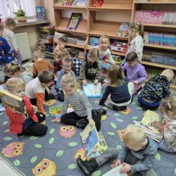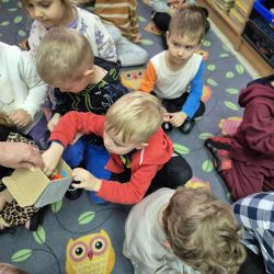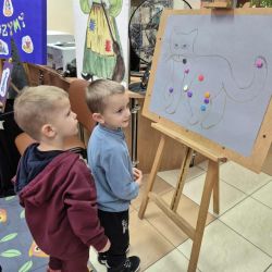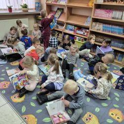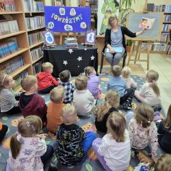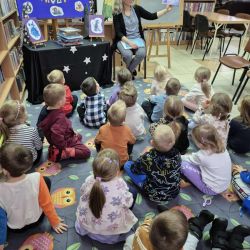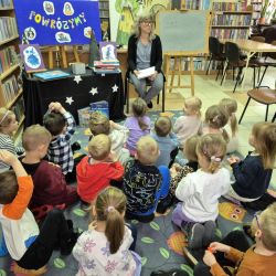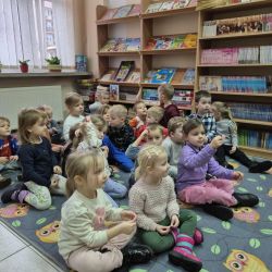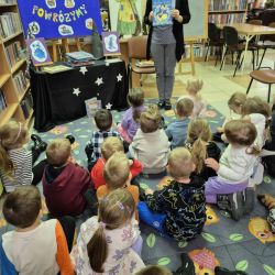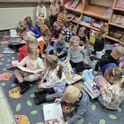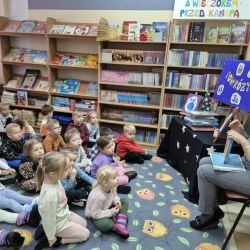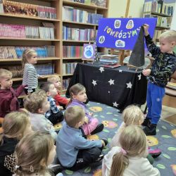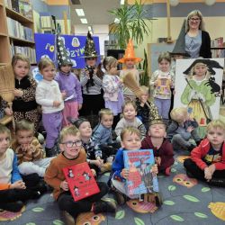 Dzieci z grupy "Misie" były z wizytą w bibliotece. Miały tam możliwość przenieść się w magiczny świat wróżb i zabaw związanych z andrzejkową tradycją. Na początku wysłuchały wiersza "Mała wiedźma". Brały również udział w zabawach andrzejkowych: Losy szczęścia, Magiczna kula. Pod koniec wizyty przedszkolaki oglądały książeczki. To był dzień pełen wrażeń.